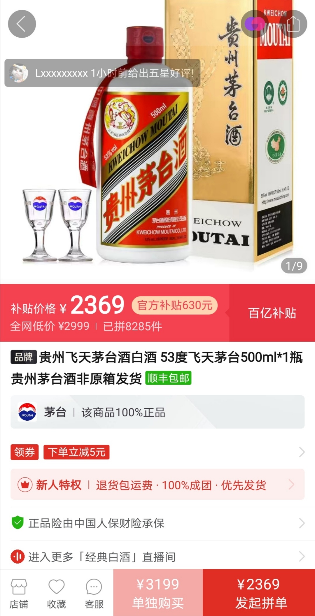 低于市价近1000元卖茅台的拼多多,引发市场关注。
