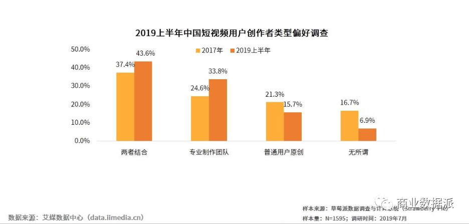 好在,用户市场给出了恰当的反馈。据艾媒报告显示,2019年上半年,短视频用户对PGC内容表现出更高的偏好,对于PGC和UGC结合的视频偏好率由37.4%上升至43.6%。短视频用户付费意愿大幅度增加,从31.3%增长至54.8%,过半用户更愿意为喜爱的视频付费。