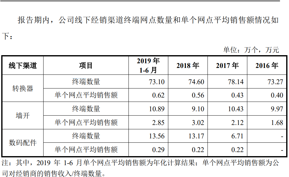 财报数据显示,公牛2019年上半年转换器、墙开、数码配件终端数量合计97.55万家。这个数量,超过了同行10倍,甚至100倍。