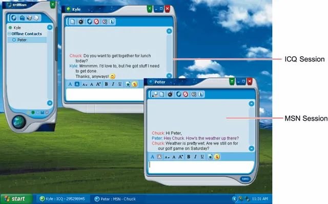 在推特之前,微软的MSN Messenger,谷歌的Google Talk以及余威仍在的AIM、ICQ等等都可以开放协议互联互通。所以,苹果Mac系统自带的聊天工具,以及Trillian等第三方客户端都可以跟官方用户交流。