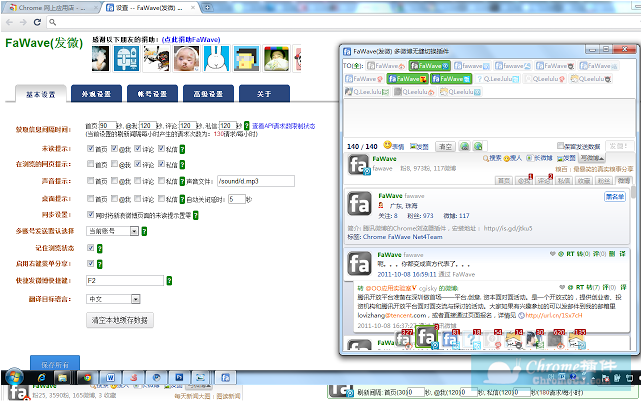 在电脑上的谷歌浏览器,有一款极其著名的插件,名叫“FaWave发微”。它的作用很简单,可以登录你在国内外所有平台上注册的微博客账户,以及其它带有140字短动态功能的账户(如豆瓣),然后把你此时想说的话一口气同步到以上所有地方。