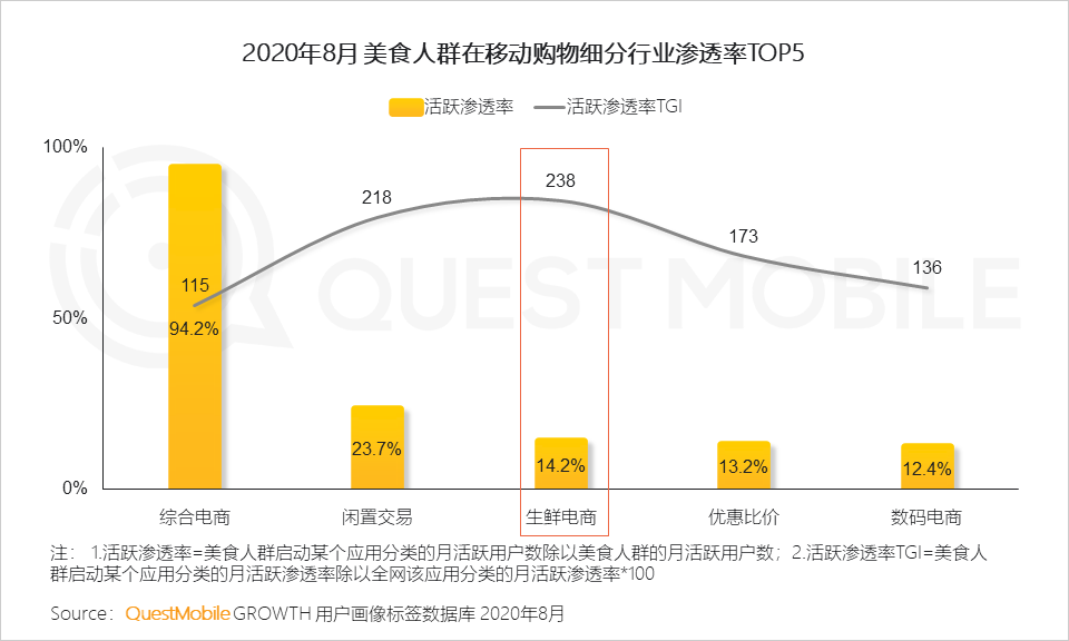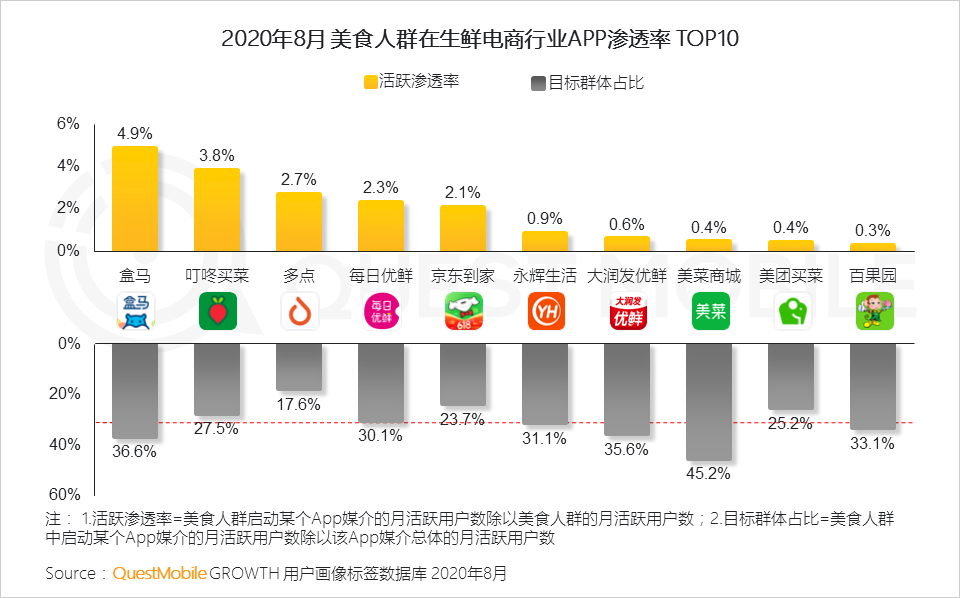 3.3 美食人群成为生鲜电商类APP的重要来源,在多款生鲜电商应用占比超30%