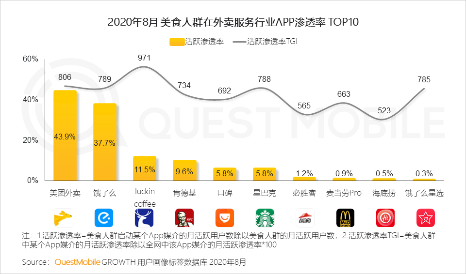 3.1 外卖行业的快速发展,满足了用户足不出户尽享美味的用餐需求,美食爱好者们对外卖类APP更是偏好显著,活跃渗透率TGI均在500以上