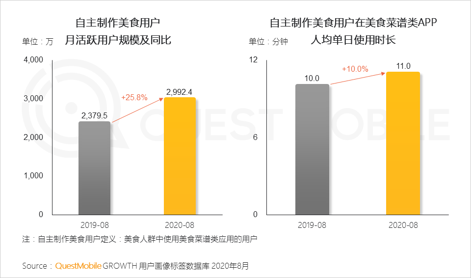 4.1 受疫情的影响,很多美食爱好者开始去尝试自己做菜,自主制作美食月活跃用户规模近3000万,同比增长25.8%,每天花在美食菜谱应用的时间提升了10%