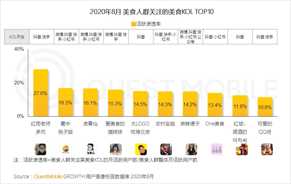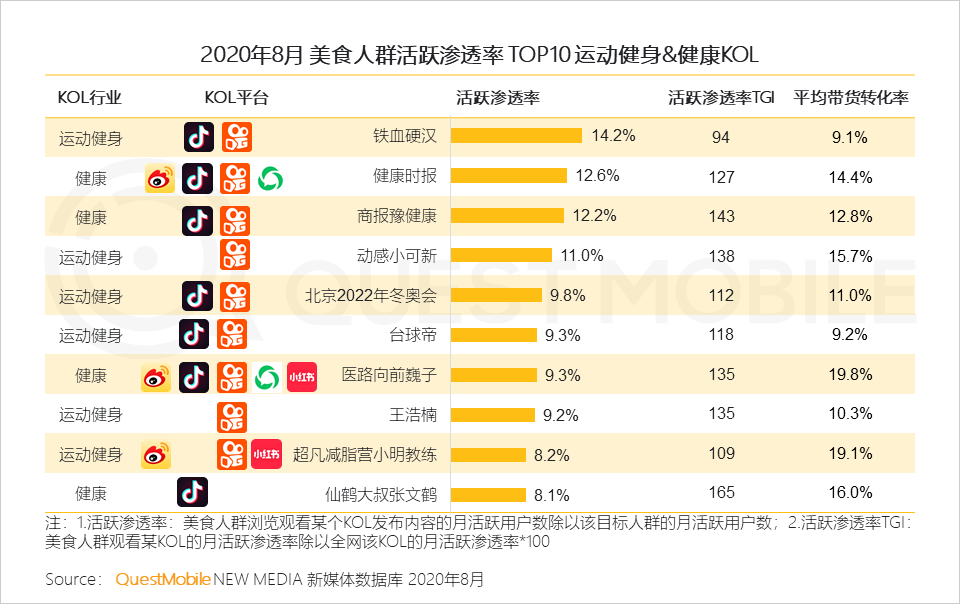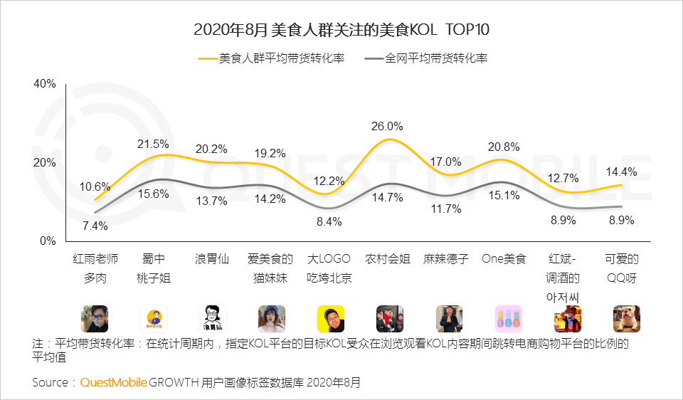 2.3 美食KOL多平台布局,短视频平台成为标配,对美食人群的平均带货转化率明显高于全网用户