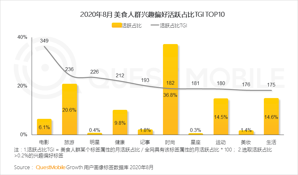 1、美食人群兴趣爱好十分广泛,尤其在娱乐时尚、旅游出行、运动健康等方面较为突出