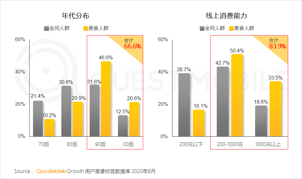 美食人群占移动大盘总体的10%,2/3为90后00后