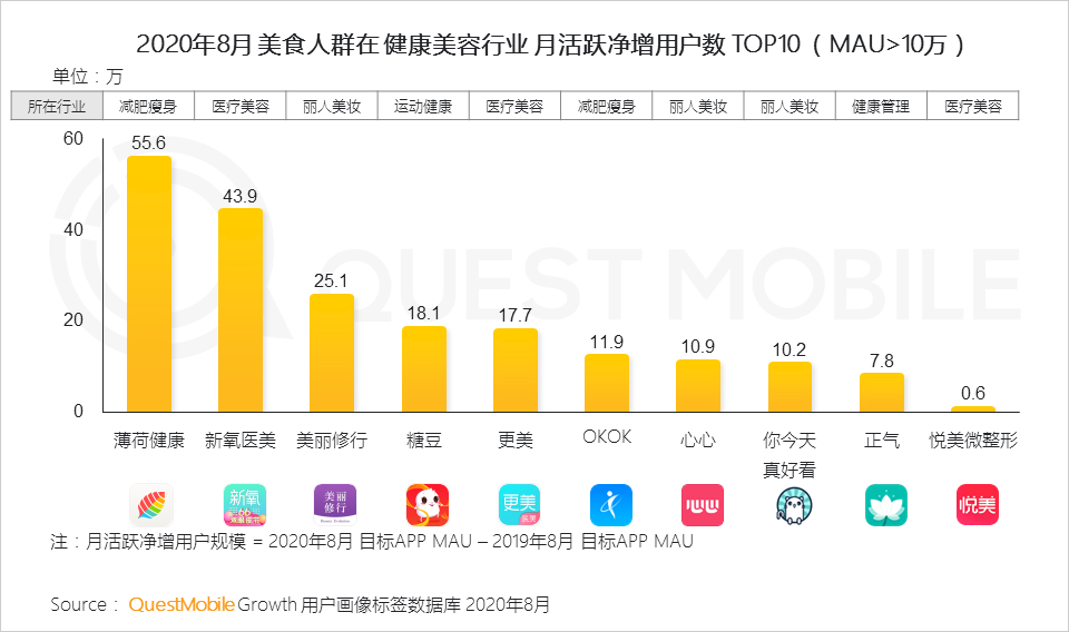5.1 美食人群对于各类型健康美容类APP使用均有快速增长,对于健康美容的需求表现较为多元