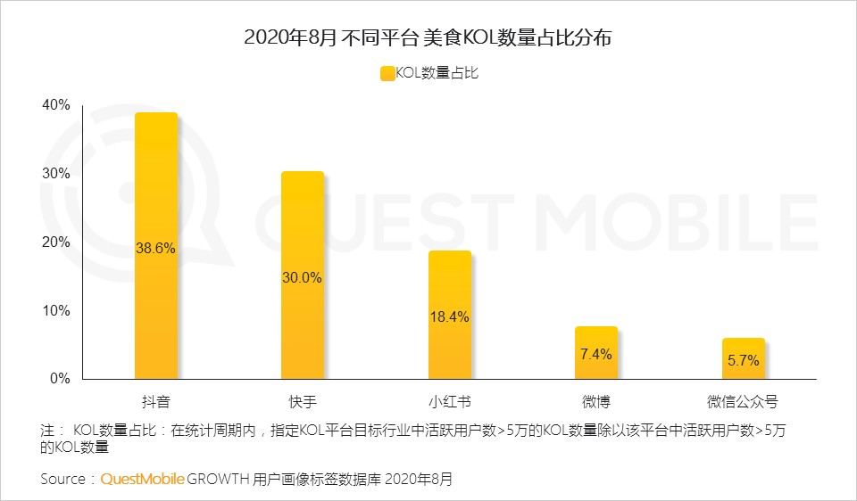 2.2 美食KOL已成为内容创作市场的重要群体,抖音、快手短视频平台美食KOL数量占比均超三成