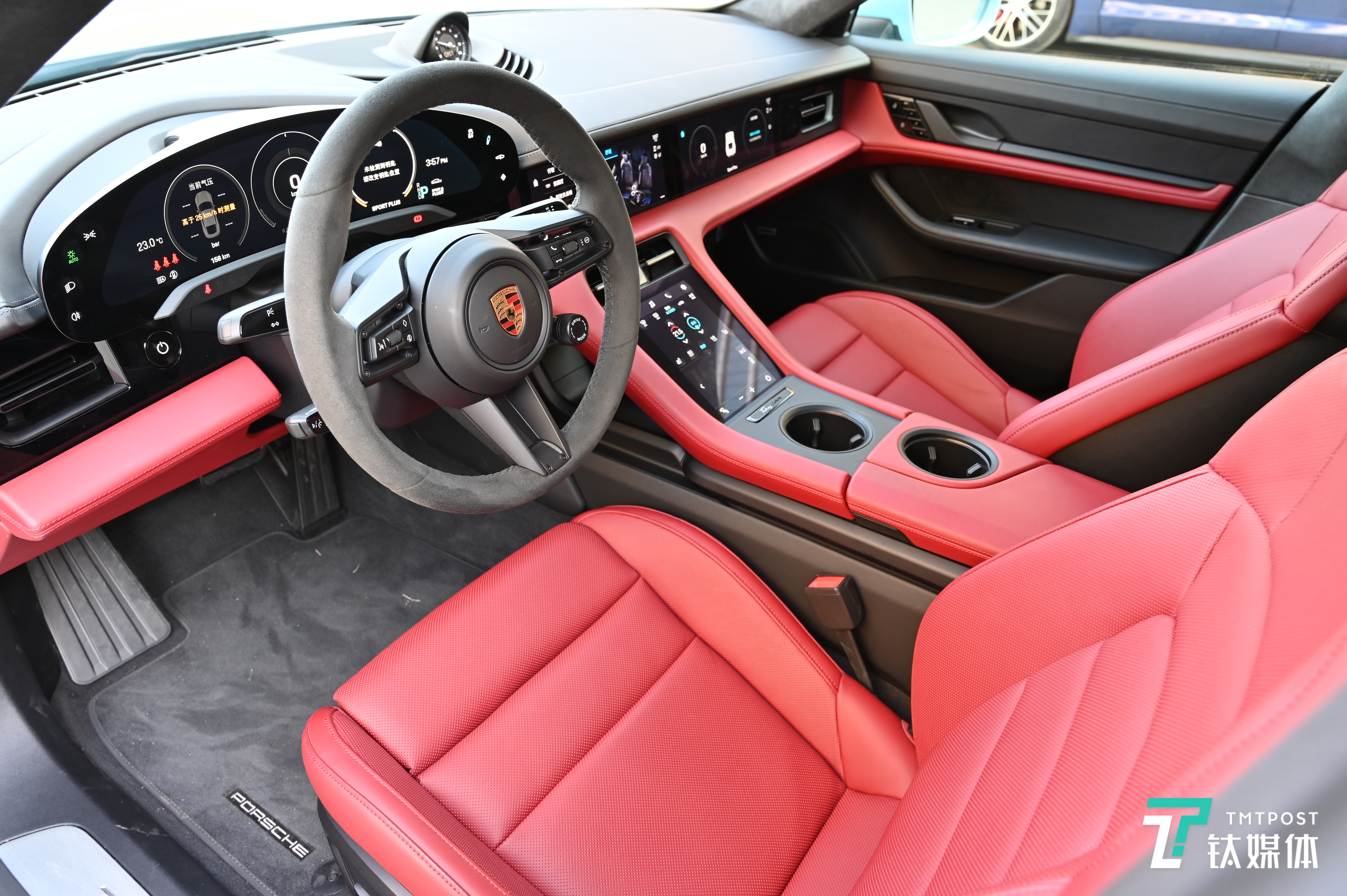 Taycan的内饰凸显了“以驾驶者为中心”的设计理念,以实现在驾驶途中所有的功能都触手可及,所有的驾驶信息也都在视线范围内。物理按键明显减少,更多通过触控屏操作。