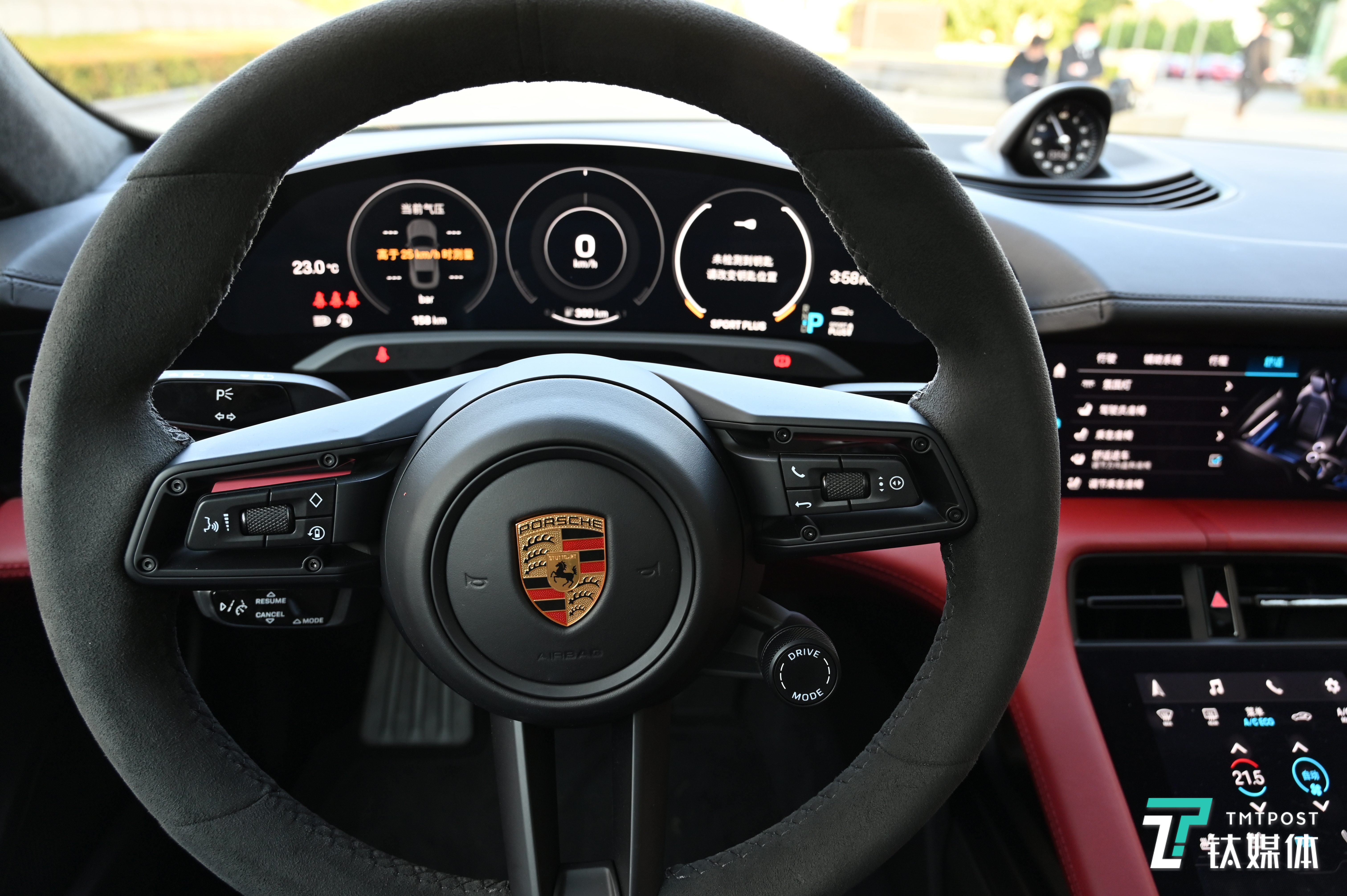 保时捷为了驾驶员可以享受到传统发动机的轰鸣声,还特别设计了电子音浪功能,这一功能可以随驾驶员喜好来打开或者关闭,打开后,会提供一种很有科技感的发动机声浪模拟,烘托驾驶气氛。不过对于我来说,更喜欢关闭这一功能,来享受彻底安静的电动车驾驶氛围。