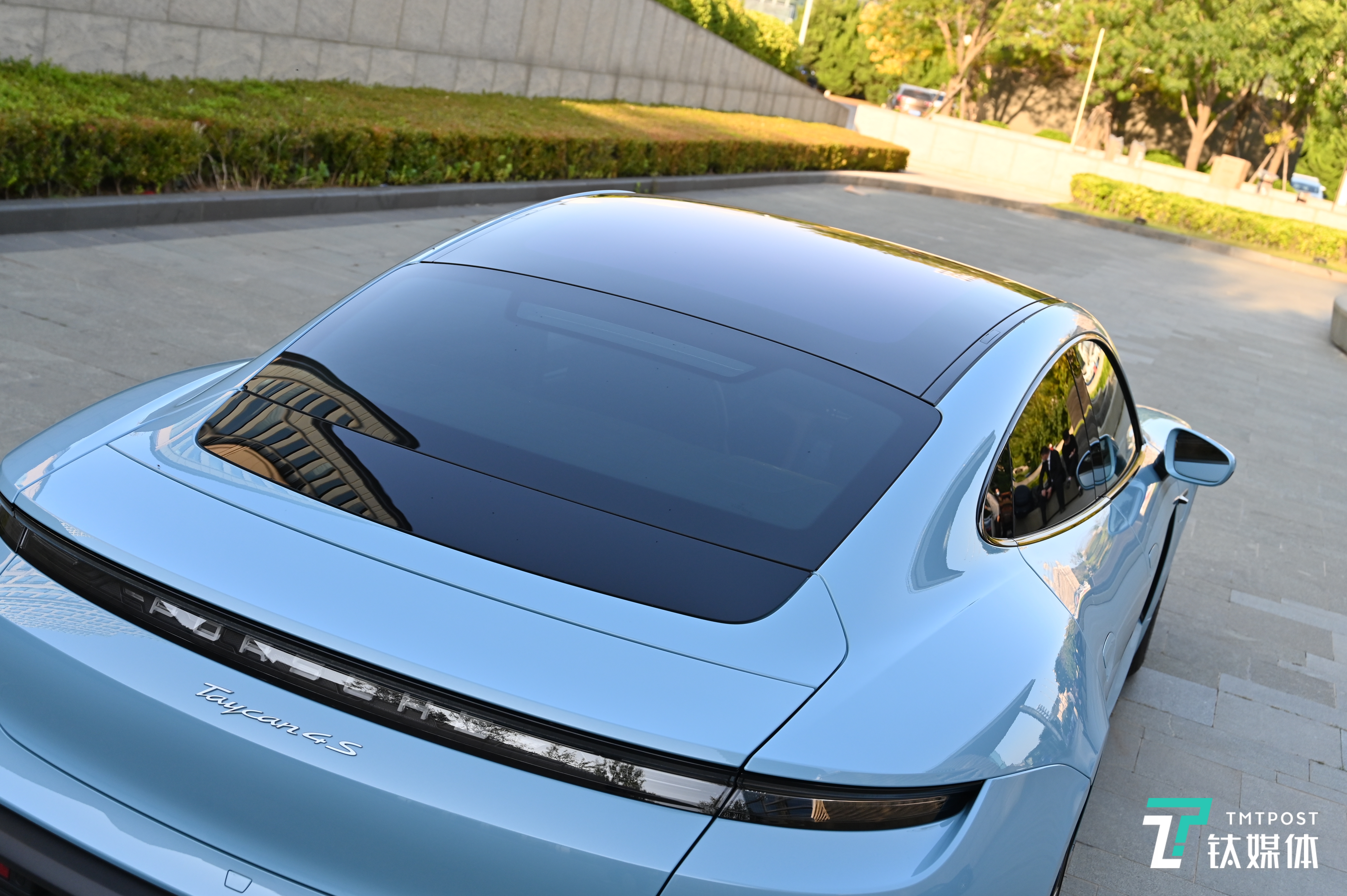 Taycan 4S采用了玻璃一体化的顶棚,做到隔热和阻隔紫外线的功能,这一设计,为Taycan 4S提供了 更优雅漂亮的车身曲线,同时也不会像特斯拉 Model 3的乘客那样在夏天被暴晒。