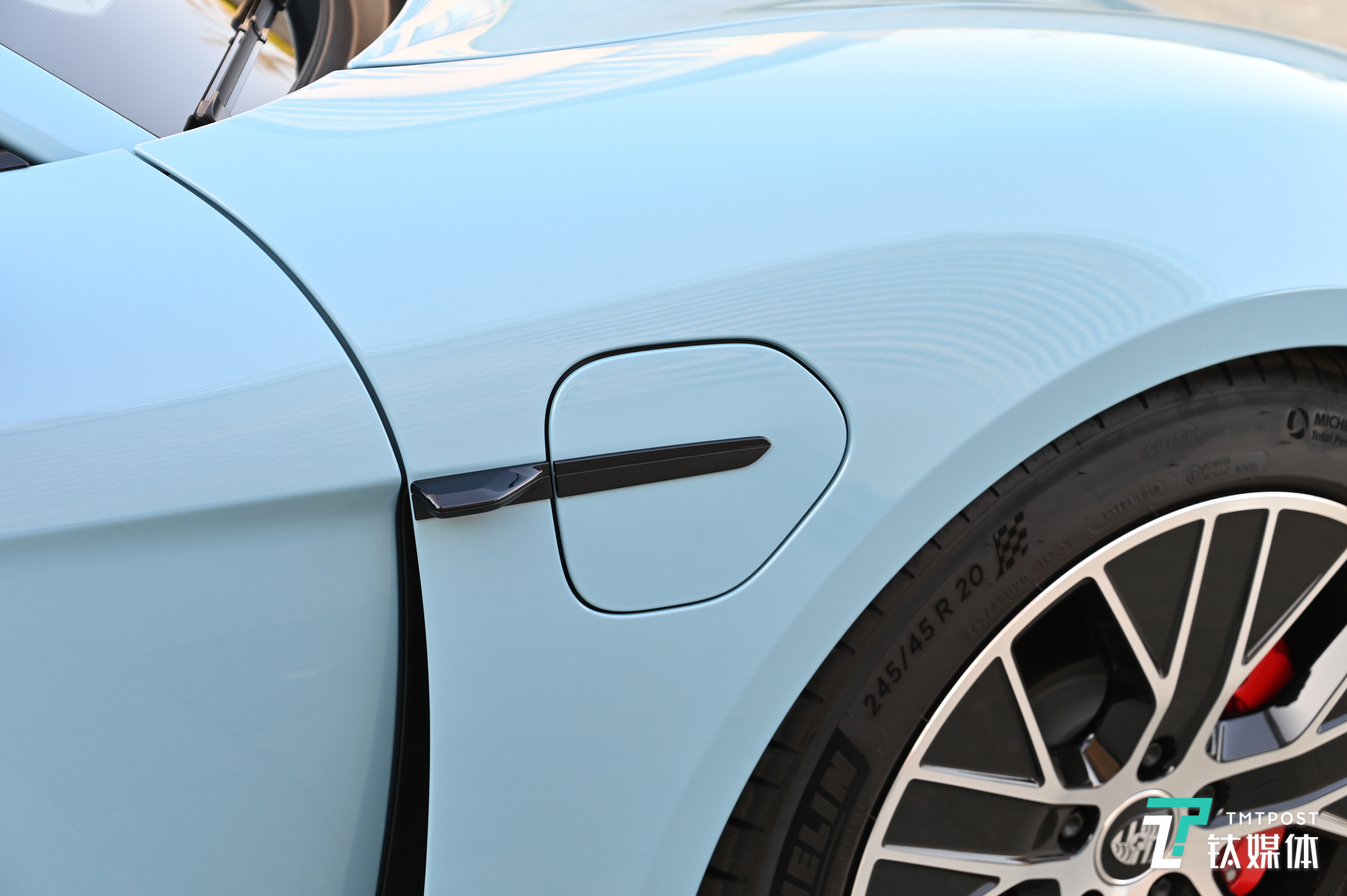 另外值得一提的是Taycan 4S的充电口舱门,花上5800元就可以选购电动舱门,充电时,通过触控会自动升起,还带有破冰功能,不会在冬天因为结冰被冻住。