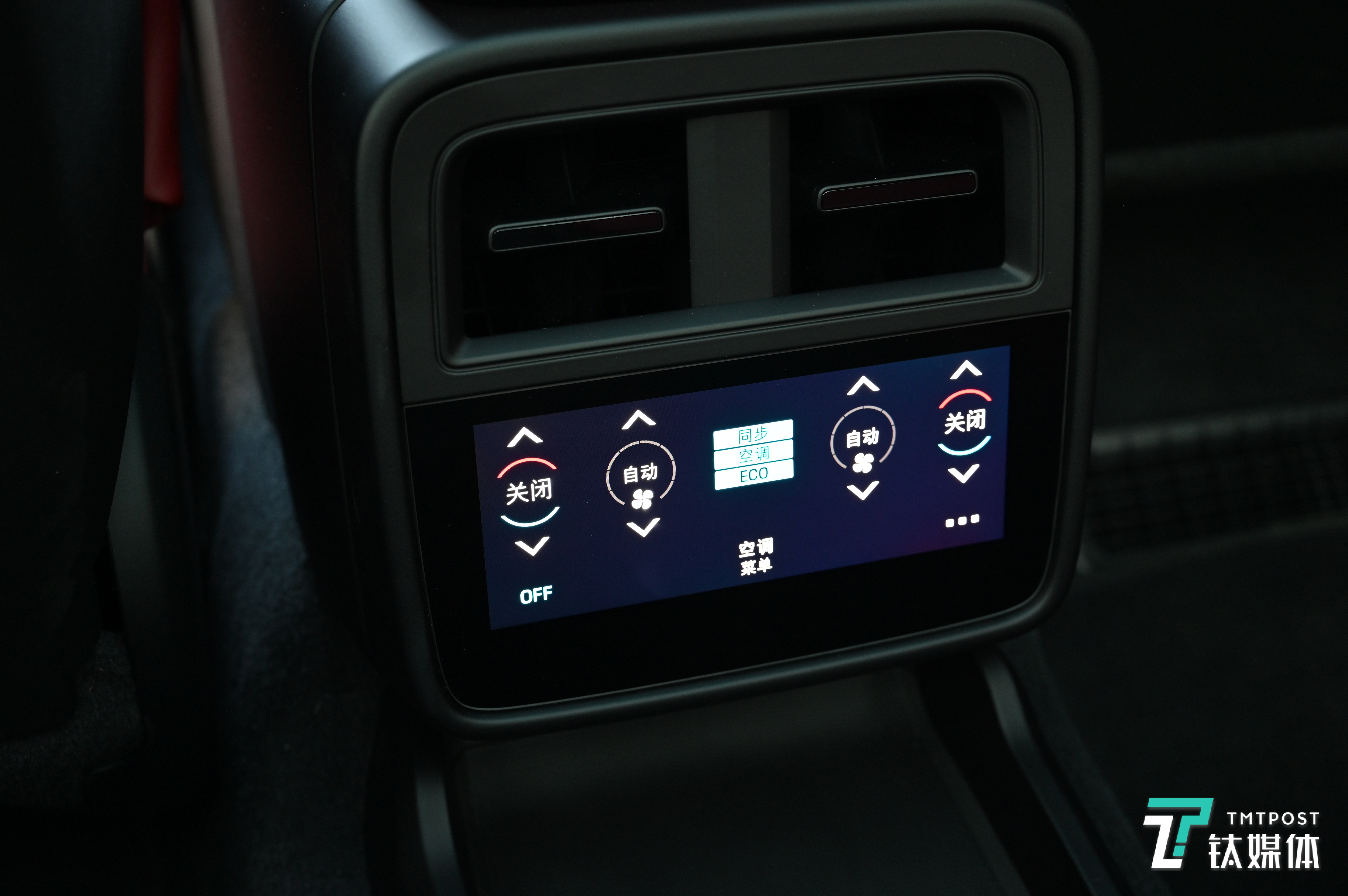 后排的空调出风口控制面板也同样是液晶屏幕,充满科技感,在后排座位下方还提供了 2个type-c充电接口,方便后排乘客给手机充电,另外在手套箱中还提供了一个无线充电手机夹的功能。