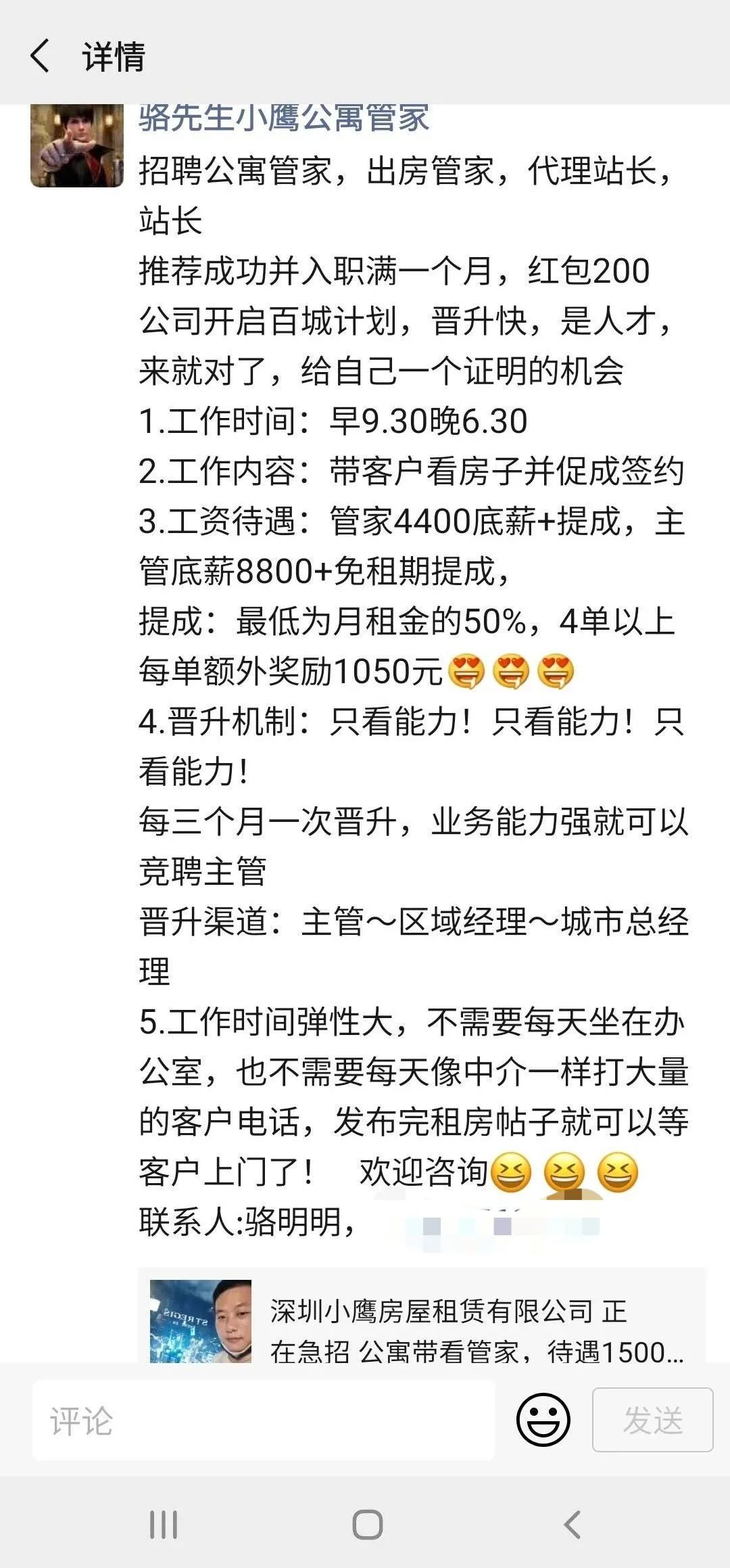 小鹰找房的招聘信息,图源受访者