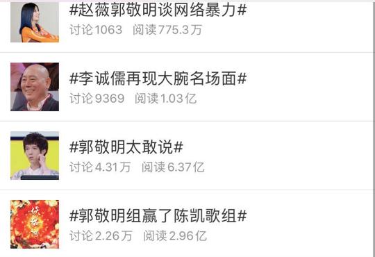 但不可置否的是,郭敬明的“热搜担当”能力。起码,比起以口碑、票房论英雄的电影市场,综艺市场,郭敬明至少不缺话题度。换言之,哪档综艺节目率先拥有了郭敬明,哪档节目就赢在了“起跑线”。