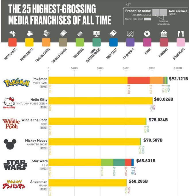 受益于宝可梦在全球的受欢迎程度,宝可梦公司(The Pokémon Company,以下简称为 “TPC”)在2019年的销售额达到了42亿美元,同比2018年的29.8亿美元增长了40.9%,继续保持着高速的增长。