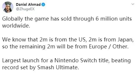 与之类似的《宝可梦:剑/盾》的主要市场也在北美和日本,在该作品首发3天时,官方透露数据全球销量突破600万,其中日本市场超过200万,而美国的销量同样超过200万。