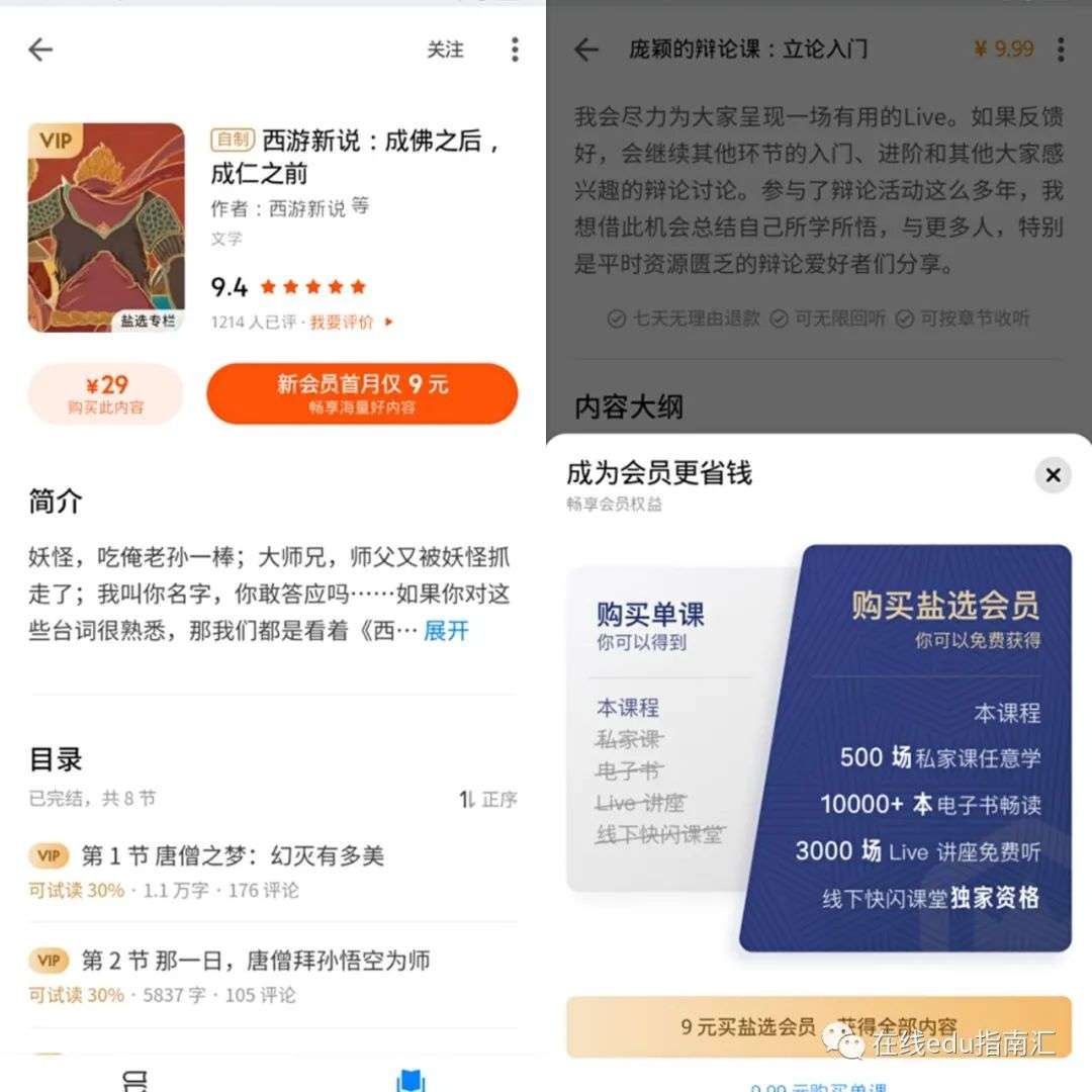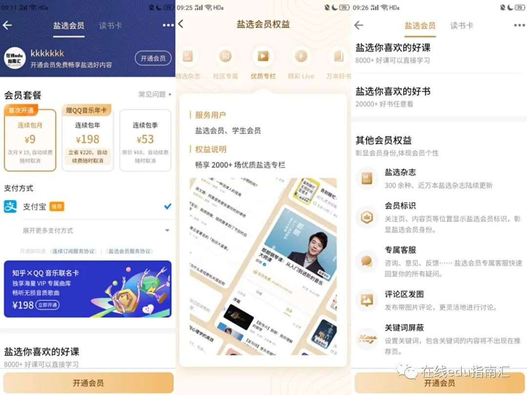 两种会员订阅:1)知乎盐选会员定价与权益