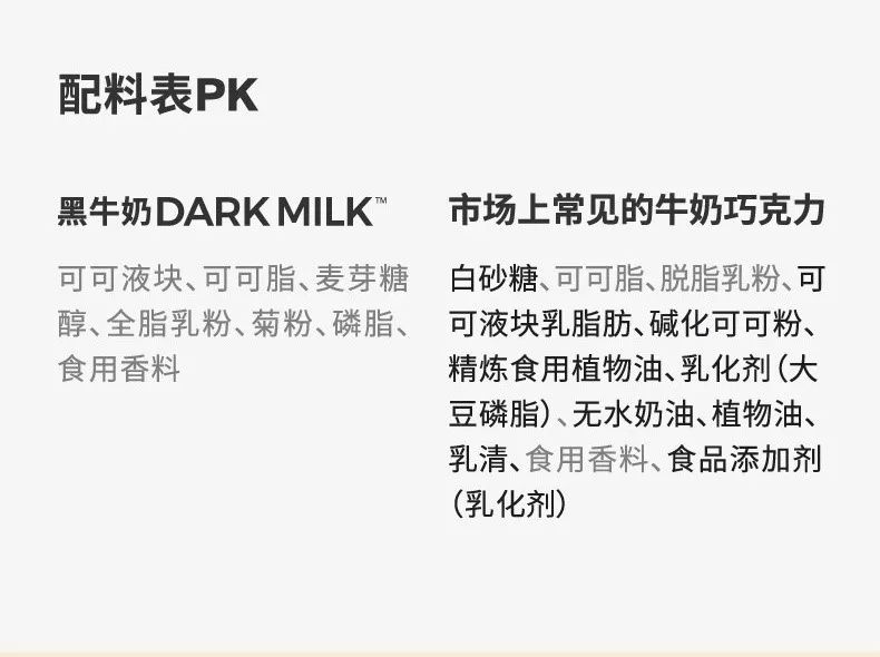 而打着“无白砂糖”广告的每日黑巧,虽然取掉了白砂糖,加入了相对健康的菊粉,但配料表中也含有麦芽糖,含量远高于菊粉。实际上并不是真正的“无糖”。