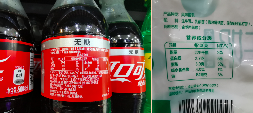 在一些无糖可乐、无糖酸奶的配料表中,也使用了安蜜赛、阿斯巴甜等人工代糖。