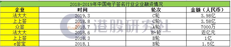 不能否认,近年来电子签名行业受市场热捧的现象。从融资上来看,自2015年至2019年10月,电子签名平台共迎来20次左右的融资,有16次是聚焦在上上签、法大大、e签宝三家厂商上,其中上上签至少融资5轮、法大大融资6轮,e签宝融资4轮。虽然多数聚焦在头部厂商,但不难看出,行业是备受追捧的。