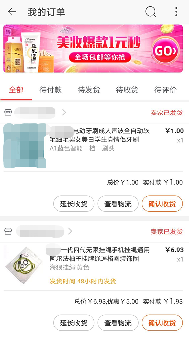 在淘宝“1元更香节”下单的用户陆陆续续收到了商品。用户彭翰购买了一把电动牙刷。“肯定是值得的,羊毛薅得很成功。”他对新浪科技肯定了商品在价格上的优势,但也直言不会用它来刷牙:“安全性上还是有点担忧。”