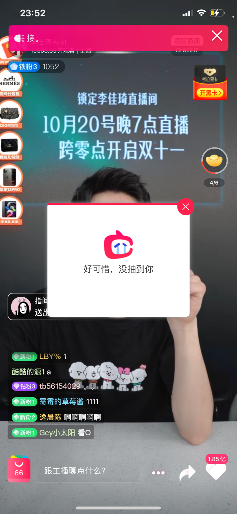 虽然李佳琦直播间赠送的爱马仕、香奈儿包包没能抢到,但资生堂精华露、欧莱雅面膜、完美日记小细跟口红,所有想买的商品她都顺利抢到。