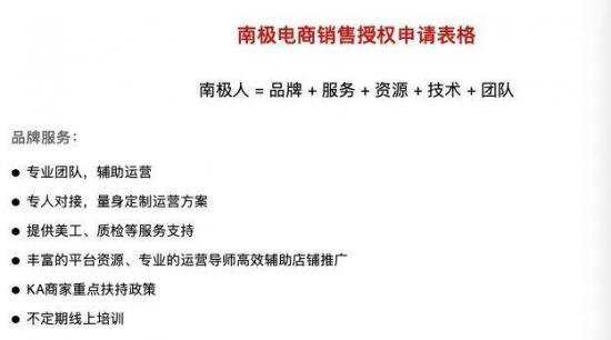 从下图这份网上流传的“南极电商销售授权申请表格”可以看出,南极人的模式是通过提供运营方案和平台资源,获得授权的工厂自行生产后,贴上自家品牌的标签,然后售卖。这个模式只提供人力运营和服务,没有任何重资产投入。