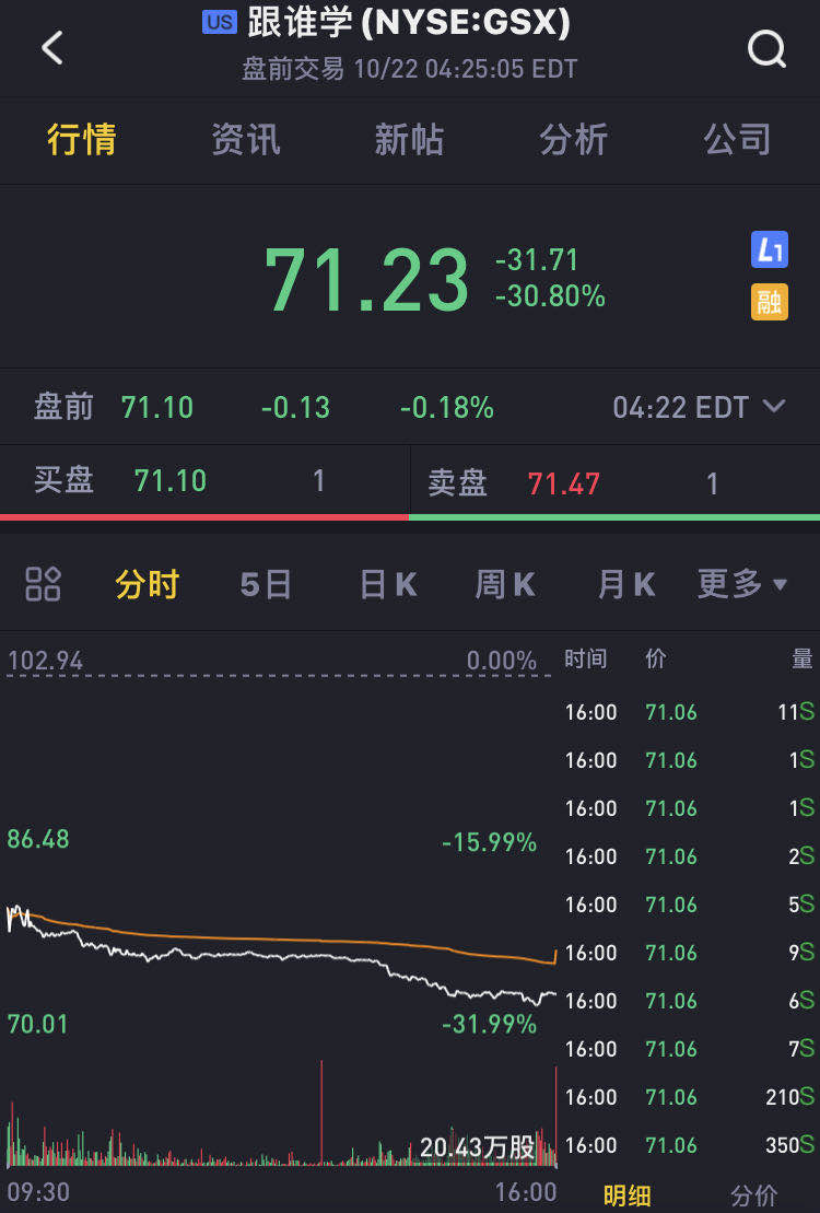 造成教育类公司股价大跌的直接原因,是前天市场中有传言跟谁学Q3业绩Preview整体低于预期。