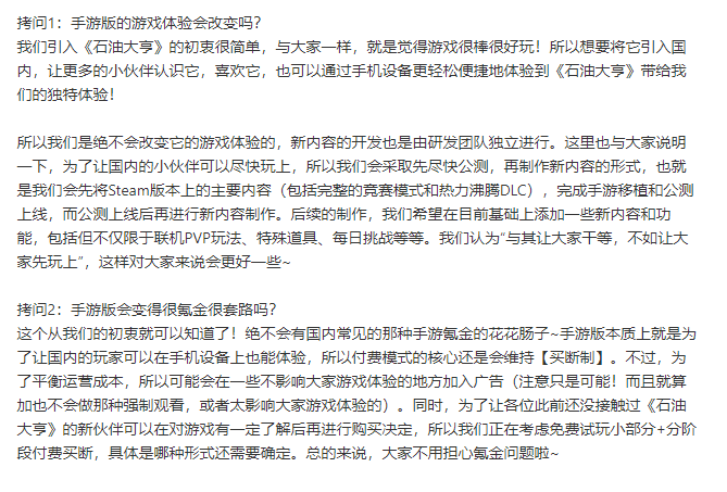 而《石油大亨》作为Steam的移植独立游戏,拥有1452篇测评,好评率达91%。考虑到在目前形势下,买断制独立游戏的生存空间实在有些稀薄,吉比特也进行了一定程度的调整。