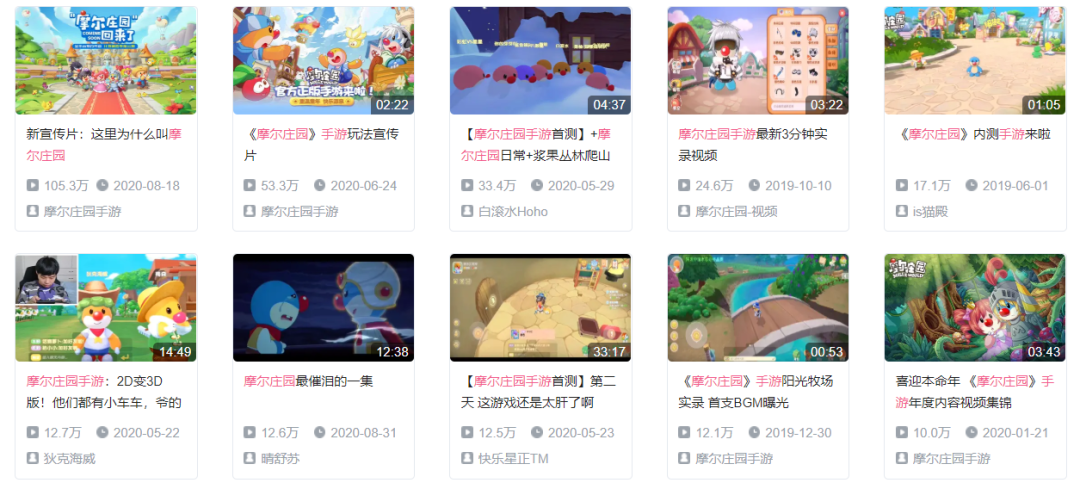 目前《摩尔庄园》手游没有大批量投入广告买量,但在B站投放的宣传片已经获得了破百万的播放量,UP主制作的相关内测视频也有着几十万的点击量。