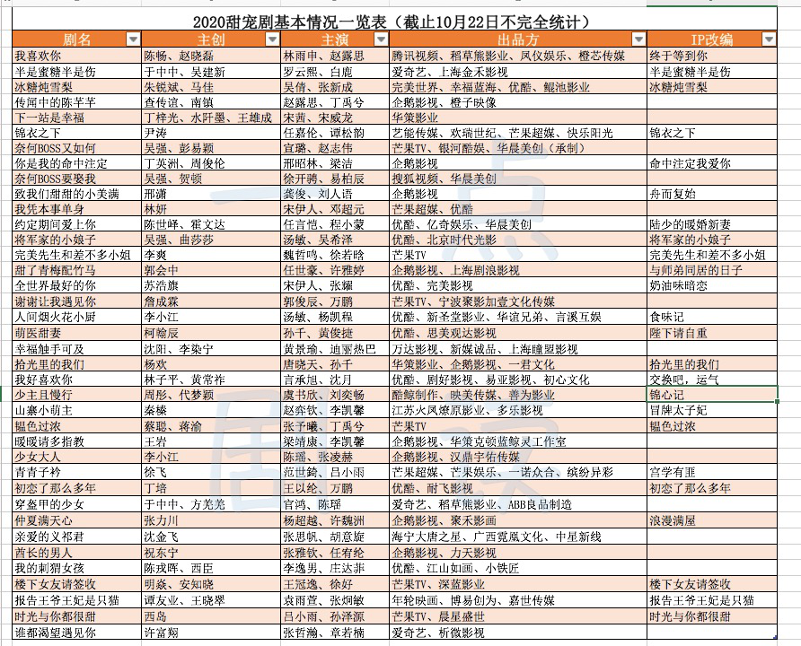 如果说这些老牌、头部影视公司勉强做到了在播出效果上领跑甜宠剧市场,那各种力量和体量公司扎堆其中都想要来分一杯羹,更能代表甜宠剧公司的现状。