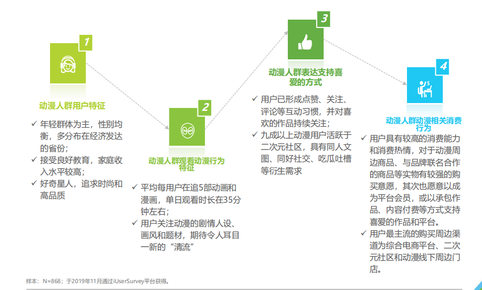 根据艾瑞发布的《动漫二次元人群营销价值白皮书》中显示,二次元用户对于动漫周边商品、品牌联名合作、内容付费有较高的消费热情,其中90后和95后动漫相关消费额更高,用户年均消费1300-1600元。于是,动漫产业的新消费更是促进行业发展的重要步骤。