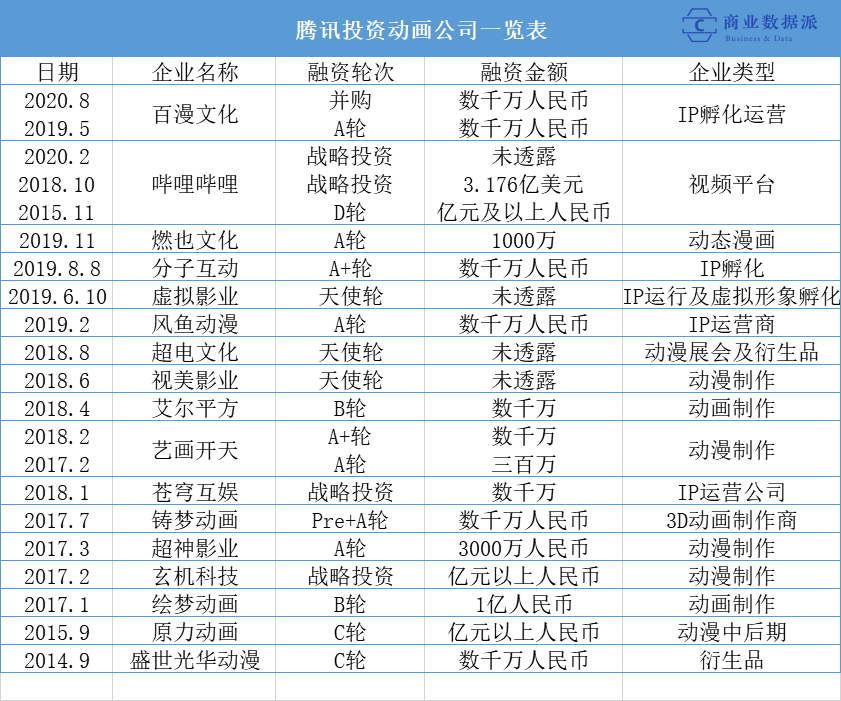 5年磨一剑,腾讯在动漫产业通过资本触角获得的力量,也是其整个资本版图的冰山一角 。