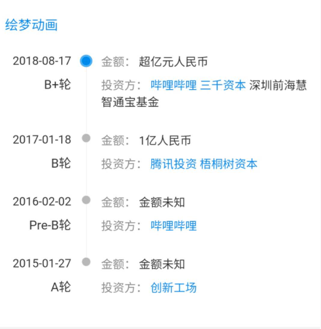 绘梦在2016年2月刚接受了B站的Pre-B轮投资,又紧接着在2017年1月,再获腾讯1亿元人民币的B轮融资,随后2018年8月,B站又跟投了其B+轮。