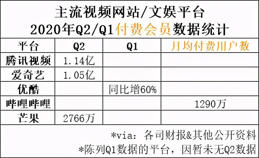 截至2019年第三季度末,爱奇艺订阅会员规模达到1.058 亿;彼时,腾讯视频订购账户数为1.002亿。截至2020年第二季度,爱奇艺总订阅会员人数为1.049亿;而腾讯视频的视频服务会员数增长至1.14亿。“腾爱cp”一如既往的你追我赶,而优酷则宣布2020年Q1付费会员同比增长60%。而今,在优爱腾三巨头身后,是努力追赶的B站和芒果TV。