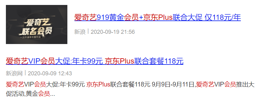 比如,凡购买腾讯视频pc端季卡的用户即可同步获得一张美团VIP月卡;爱奇艺则联动的更为直接和彻底,购买pc端月度VIP的用户即可获赠月度百度网盘会员;购买pc端季卡的用户则获赠酷狗音乐季卡。无论是pc端还是全屏VIP的包年用户,则都会同步获赠一张京东PLUS会员年卡。