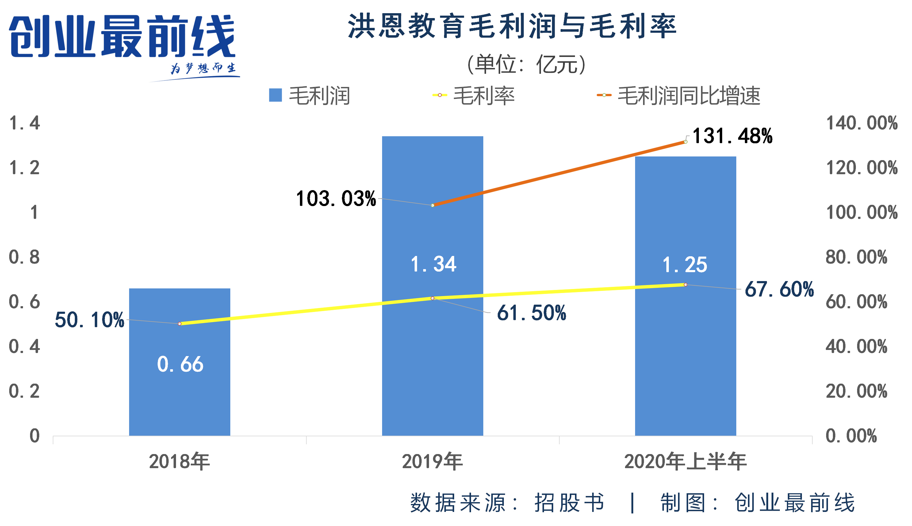 同时,洪恩教育的毛利率也呈现稳步上升态势。招股书显示,2018年、2019年和2020年上半年,该公司的毛利润分别为6601万元、1.34亿元和1.25亿元,毛利率分别为50.1%、61.5%、67.6%。