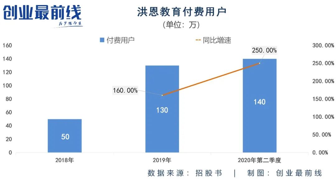 得益于付费用户的激增,洪恩教育线上业务增长迅猛。根据招股书,该公司2018年的线上学习服务收入仅为2201万元,到了2019年,这一数字被更新为1.07亿元,足足翻了近5倍;今年上半年,洪恩教育的线上学习服务收入更是高达1.52亿元,较去年同期增长近4倍。