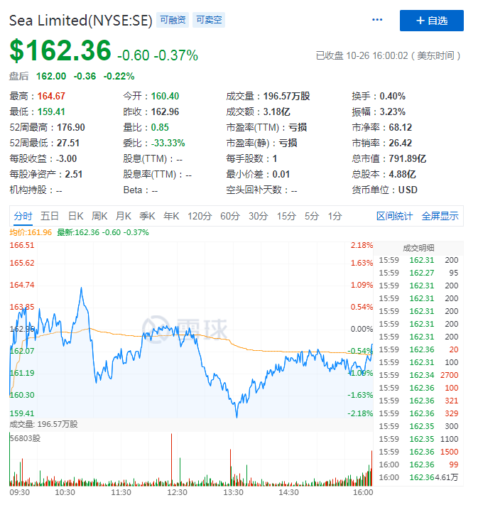 自上市之后,Sea limited股价上涨不少,截至目前,Sea limited股价为162.36美元,市值为791.89亿美元。在市值上涨背后,Sea limited旗下电商业务发挥不小的作用。