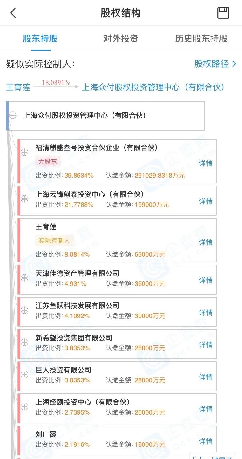 上海众付的部分股东。来源:企查查