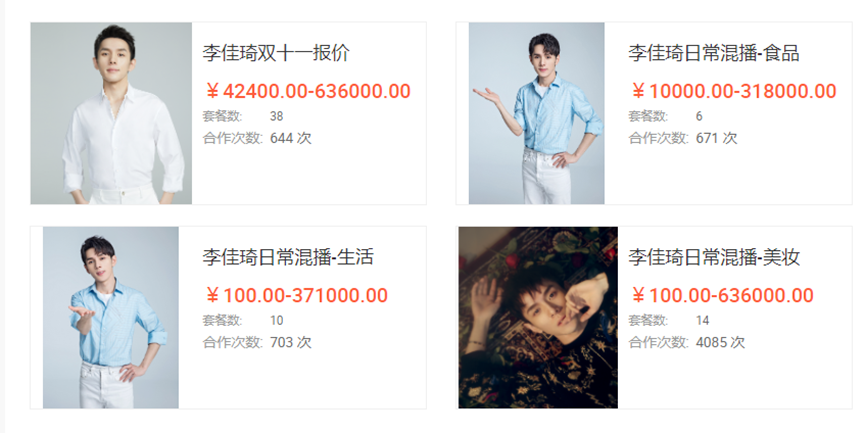 以李佳琦为例,在10月20日的直播名单中清一色的头部品牌,诸如阿玛尼、CPB、娇兰等等。反观薇娅,虽然她的商品种类比美妆赛道的“种子选手”更丰富,但品牌级别明显如出一辙。