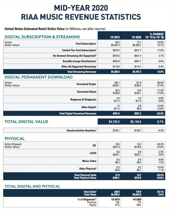 2.RIAA 2020 Mid-Year Music Industry Revenue Report