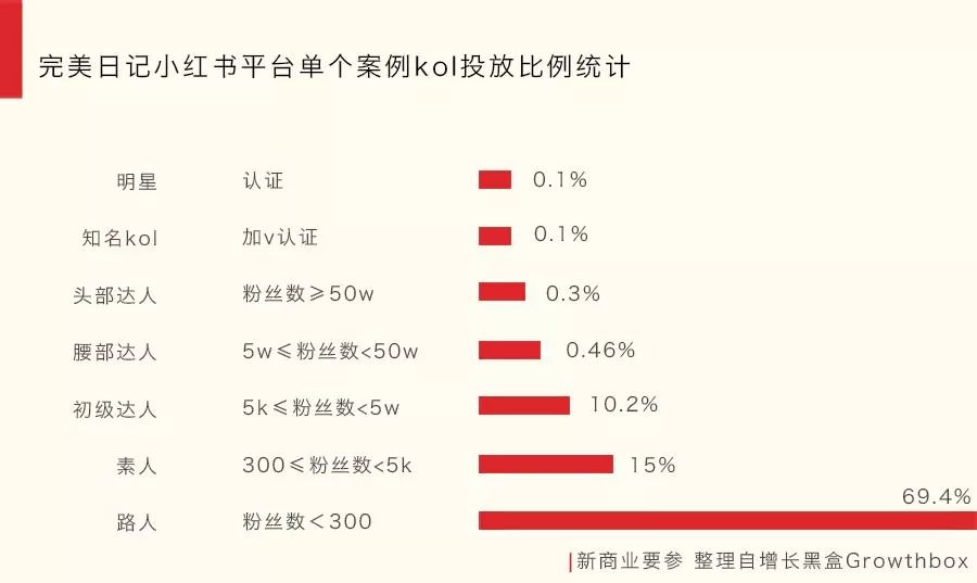 增长黑盒Growthbox在一篇分析中,将小红书中的用户分为7个层次,明星、知名kol、头部达人、腰部达人、初级达人、素人、路人。