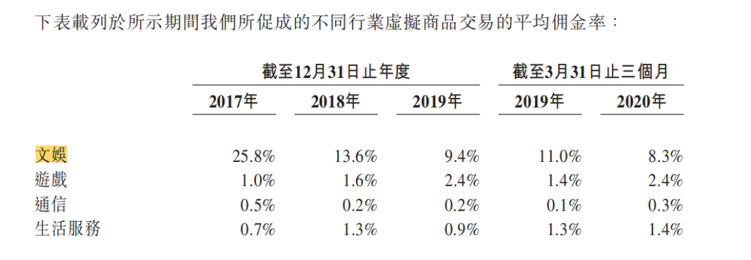 根据福禄控股和蜂助手的招股书,在2018年至2019年,我们分别看到文娱板块的平均佣金率、视频会员产品线的毛利率都有明显的下降。