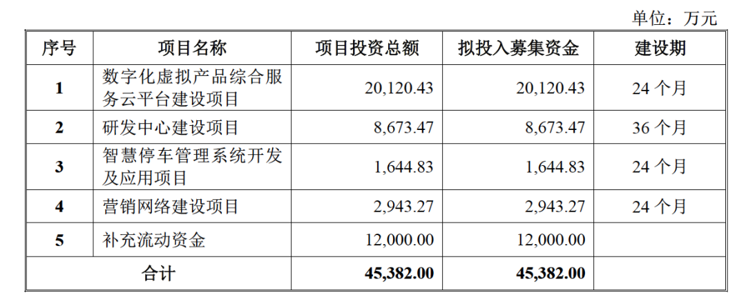 根据招股书,蜂助手计划将筹集到的资金投到公司目前收入占比非常小的“物联网”服务领域,包括数字化虚拟产品综合服务云平台建设项目、研发中心建设项目、智慧停车管理系统开发及应用项目、营销网络建设项目。