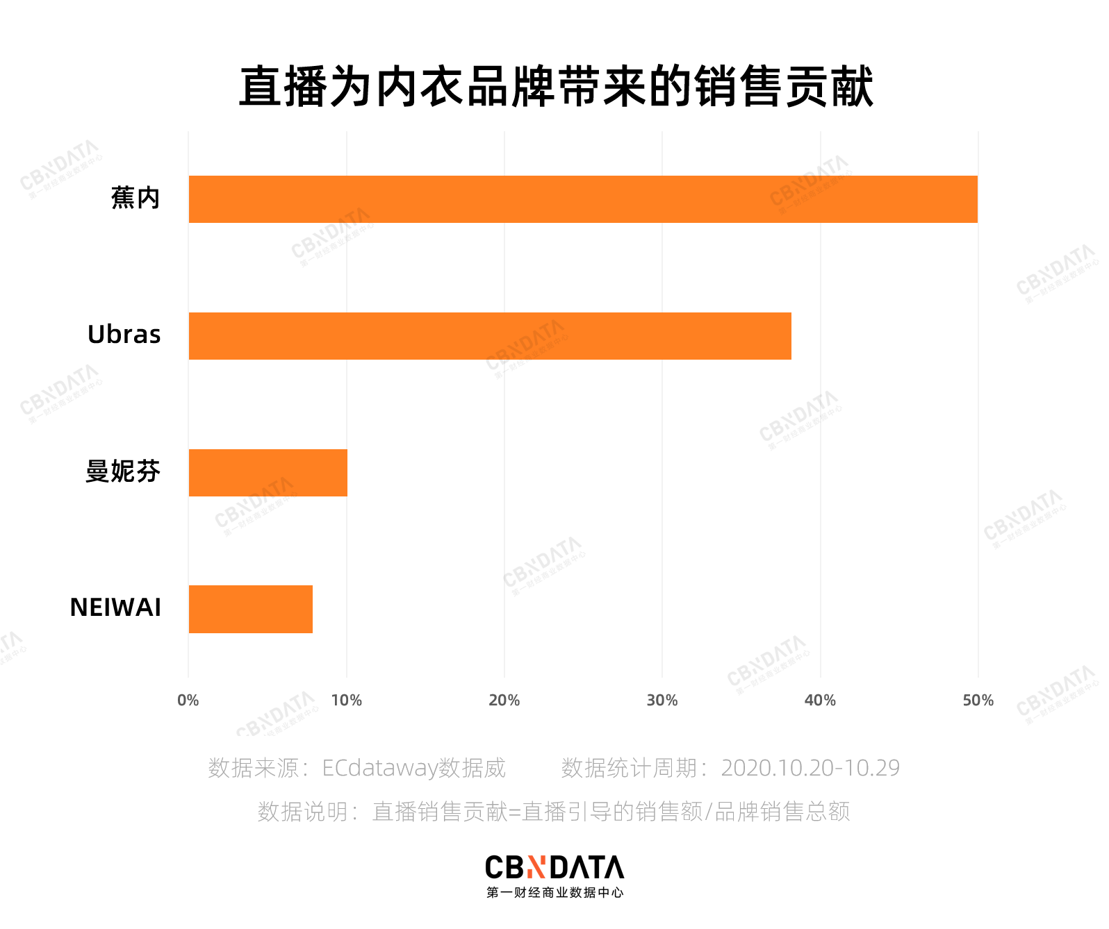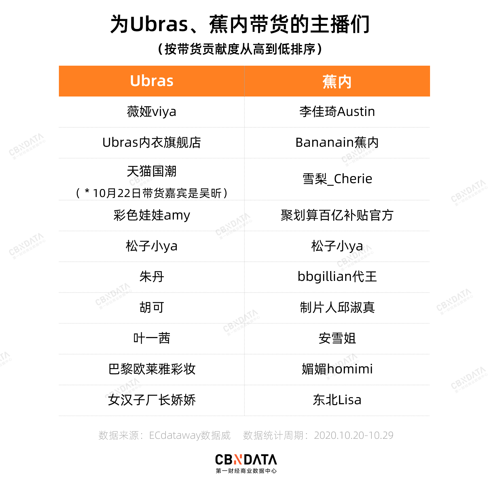Ubras和蕉内能一举冲上双11内衣榜前二,跟他们抓住直播风口密切相关。