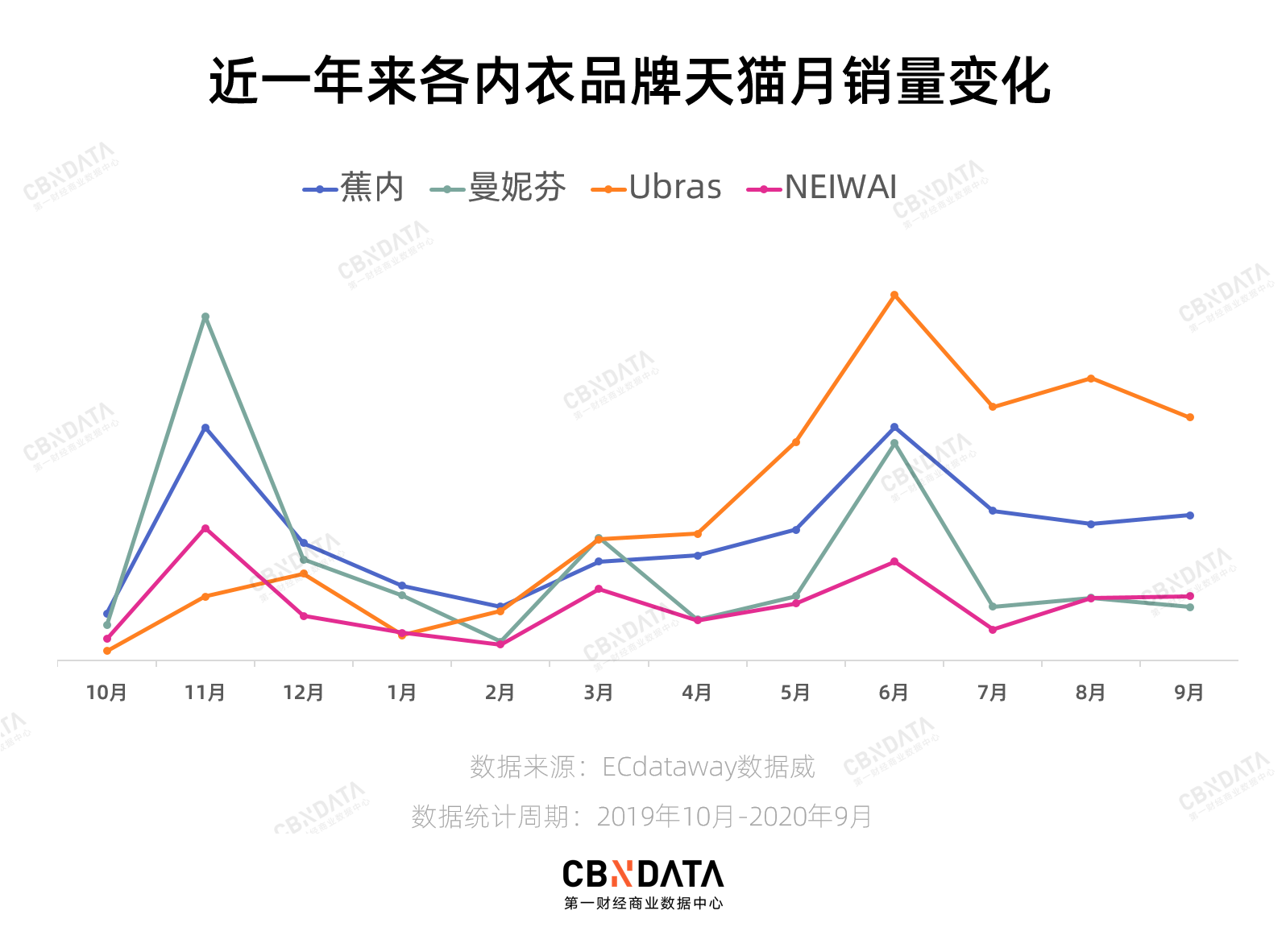事实上,Ubras近一年的销量提升都可以用“突飞猛进”来形容。这个品牌的急速成长,值得进行更长期的观察分析。