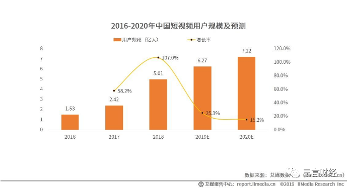 这并非快手一家需要面对的问题,而是整个行业的现状。根据艾媒咨询数据显示,2018年我国短视频用户增长率高达107%,但是2019年该数据骤降至25.1%。该机构预测2020年我国短视频用户增长率为15.2%。